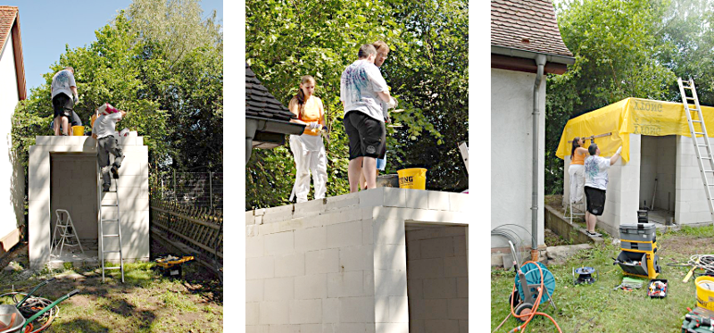 Am 10. Juli 2011 freuten wir uns bei bestem Wetter über den Einsatz der Messeler Jugend. Die Arbeiten am Toiletten-Häuschen machen Fortschritte.