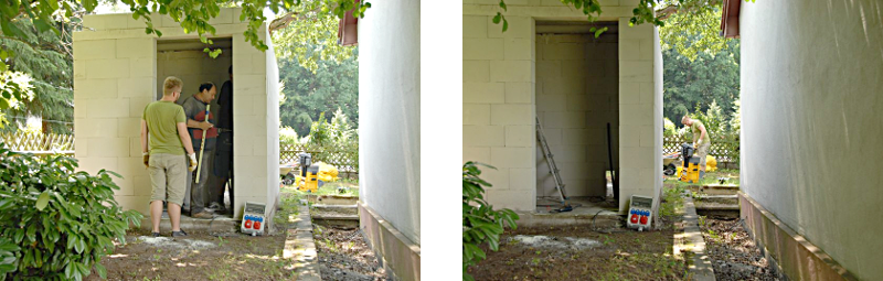 Am 10. Juli 2011 freuten wir uns bei bestem Wetter über den Einsatz der Messeler Jugend. Die Arbeiten am Toiletten-Häuschen machen Fortschritte.
