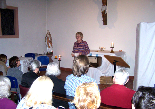 Margit-Maria Schneider, Rainer Schauberger und Markus Müller am letzten Sonntagabend die Besucher in der Sankt Antonius- Kapelle